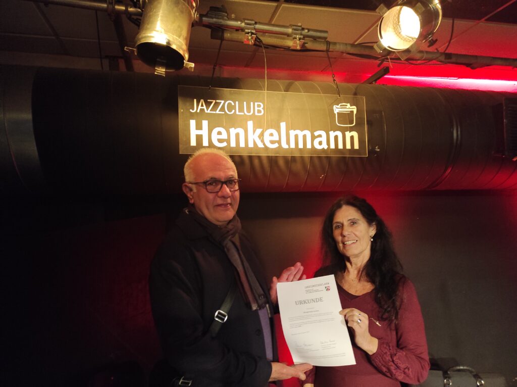 Zum 15. Mal zeichnete der Landesmusikrat NRW gemeinsam mit dem Ministerium für Kultur und Wissenschaft des Landes Nordrhein-Westfalen kleine und mittlere Bühnen der freien Musikszene für ihren besonderen Einsatz und ihr anspruchsvolles und engagiertes Live-Programm mit der Spielstättenprogrammprämie aus. Auch wir waren diesmal wieder unter den Preisträgern und so reisten am 23.Januar Gabriele Ludwig-Dizinger und Said Yousuf ans andere Ende von NRW nach Iserlohn um im dortigen Jazzclub Henkelmann unsere Urkunde anzuholen.